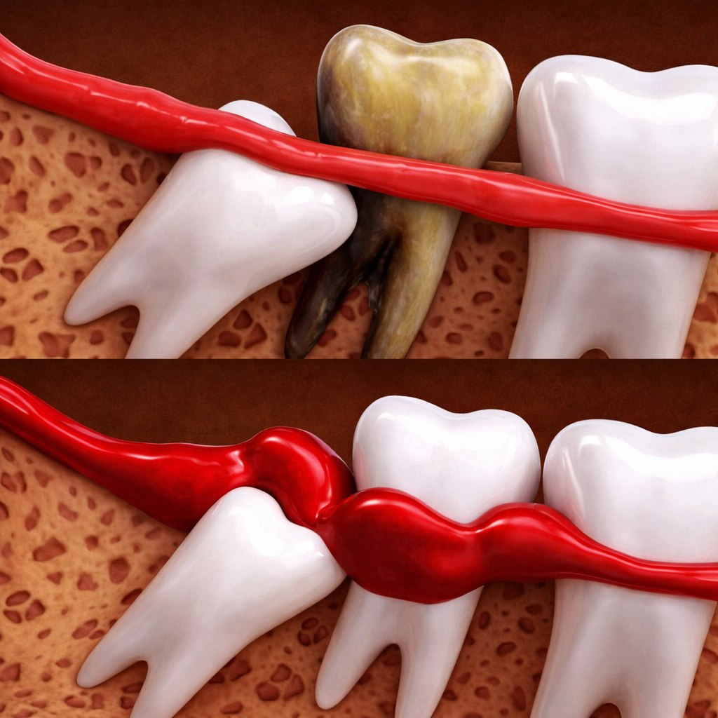 1. Неправильное прорезывание. Из-за нехватки места зубы мудрости могут расти под углом, давить на соседние зубы или даже остаться полностью скрытыми в десне. Это может привести к смещению других зубов, изменению прикуса и даже болям в челюсти.
