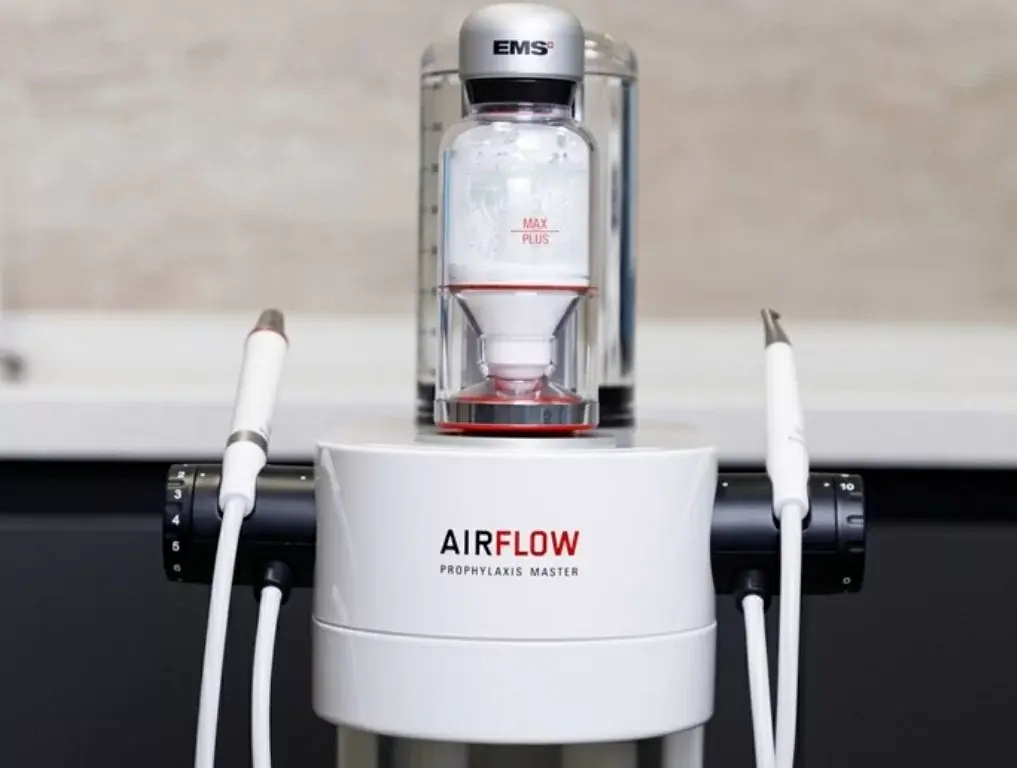 С помощью ультразвукового скалера тщательно удаляются твердые отложения камня, а аппарат Air Flow бережно счищает мягкий налет и пигментные пятна, например, после кофе или курения.