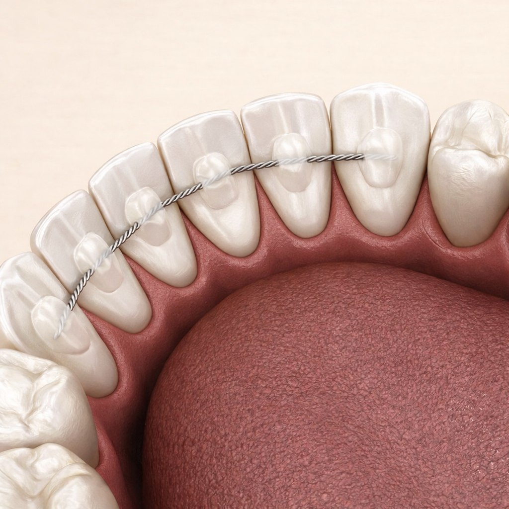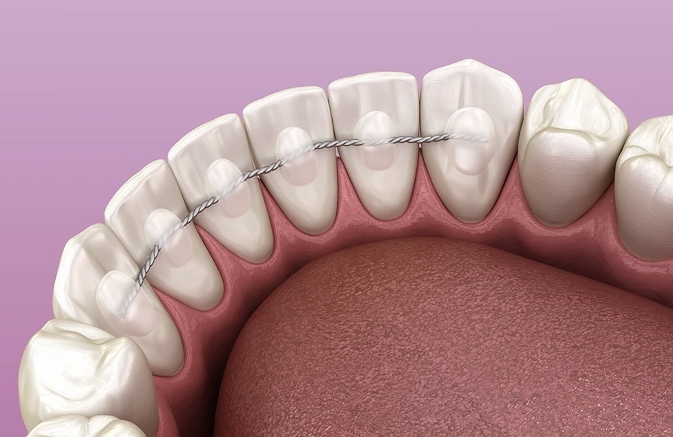 Представляют собой тонкую металлическую дугу, фиксируемую на внутренней поверхности зубов с помощью композитного материала. Они абсолютно незаметны окружающим, не мешают речи и не требуют напоминаний о ношении. Чаще всего применяются для фиксации передних зубов, которые наиболее склонны к смещению.