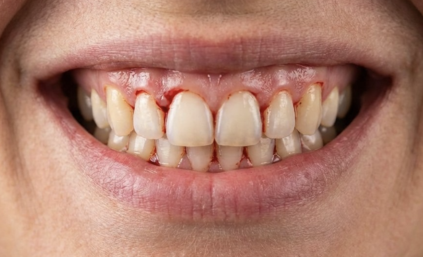В ответ на это десна воспаляется: краснеет, отекает, становится более чувствительной. Любое механическое воздействие - щётка, зубная нить, яблоко, стейк - приводит к тому, что сосуды в воспалённой ткани легко повреждаются, появляется кровоточивость. Пациенты часто думают: «Сильно чищу, травмирую» и… начинают чистить слабее, ещё больше усугубляя проблему.